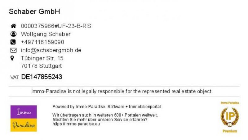 Dieses Immobilien-Exposé wird geführt unter Stuttgart. Baden-Württemberg ist hier die Oberkategorie dieses Immobilienexposé's.